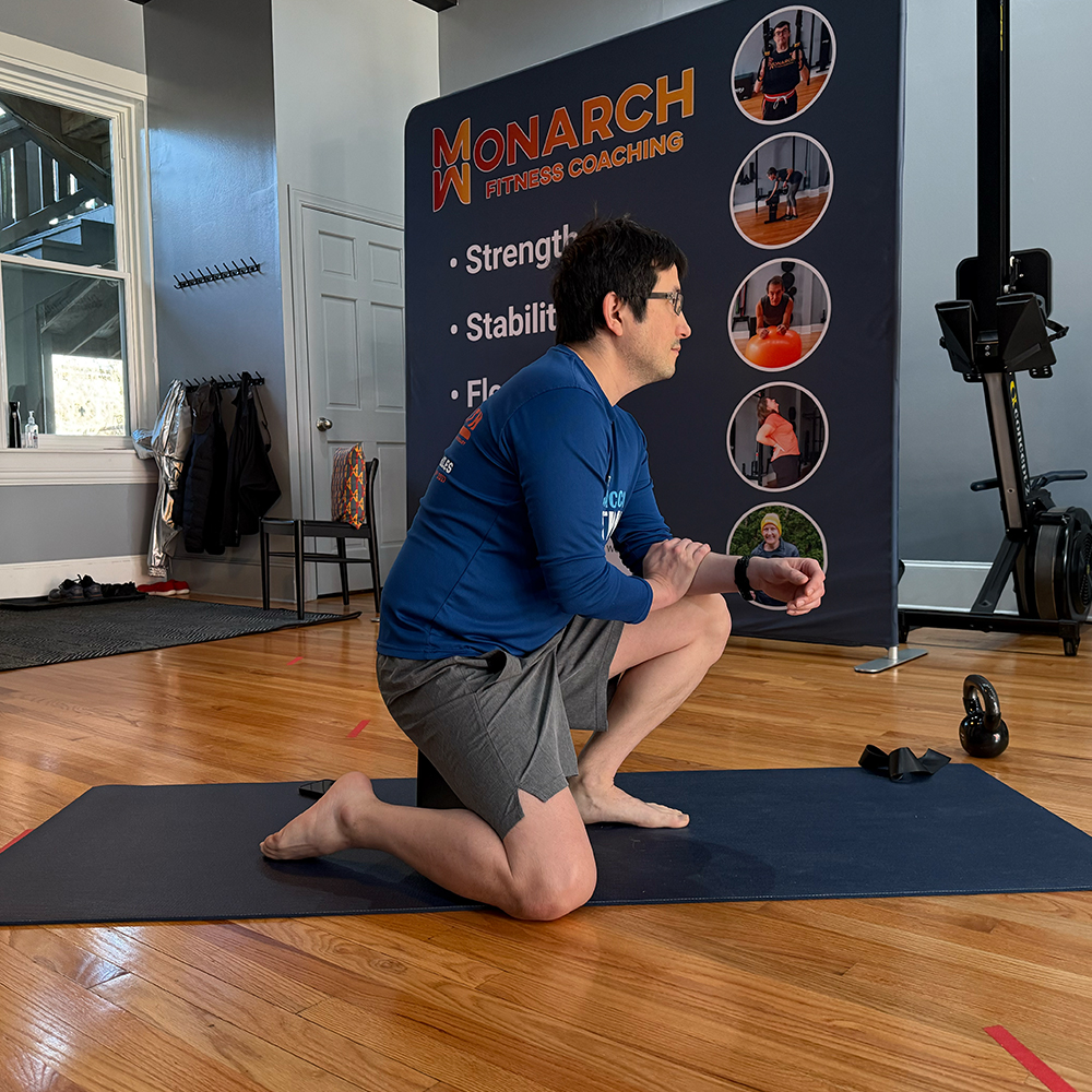 Monarch Fitness Coaching’s certified master personal trainers and mobility experts will assess both the passive and active ranges of motion in your joints. You will learn about the minimum recommended ranges for the activities you enjoy doing. For example, being able to bend your ankle is important for walking. You will then receive a customized, fitness coaching program that improves your flexibility keeping you healthy for the activities you enjoy.